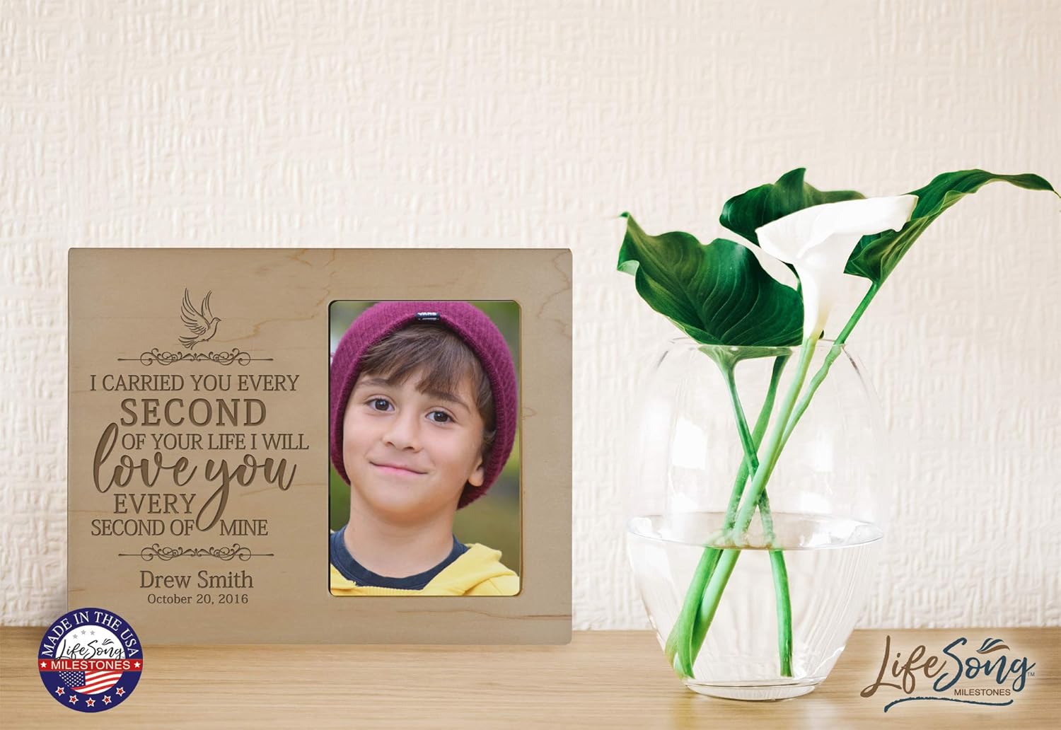 With their beautiful INSPIRATIONAL messages, LifeSong Milestones Condolence wooden picture frames keep the memory of your loved ones on display, which is even more important when they are no longer with you. With our quality selection of loved one bereavement sympathy keepsake photo frame gifts, you'll be able to create a lasting memory to honor your loved ones who have passed on. With a TOUCHING verse and a GRACEFUL POEM SILHOUETTE these memorial keepsake items are sure to be a touching tribute that will be cherished for years to come. This is a great gift for a friend or family member who grieves the loss of a cherished and honored family member. Made in the USA and Designed exclusively by 2020 LifeSong Milestones.