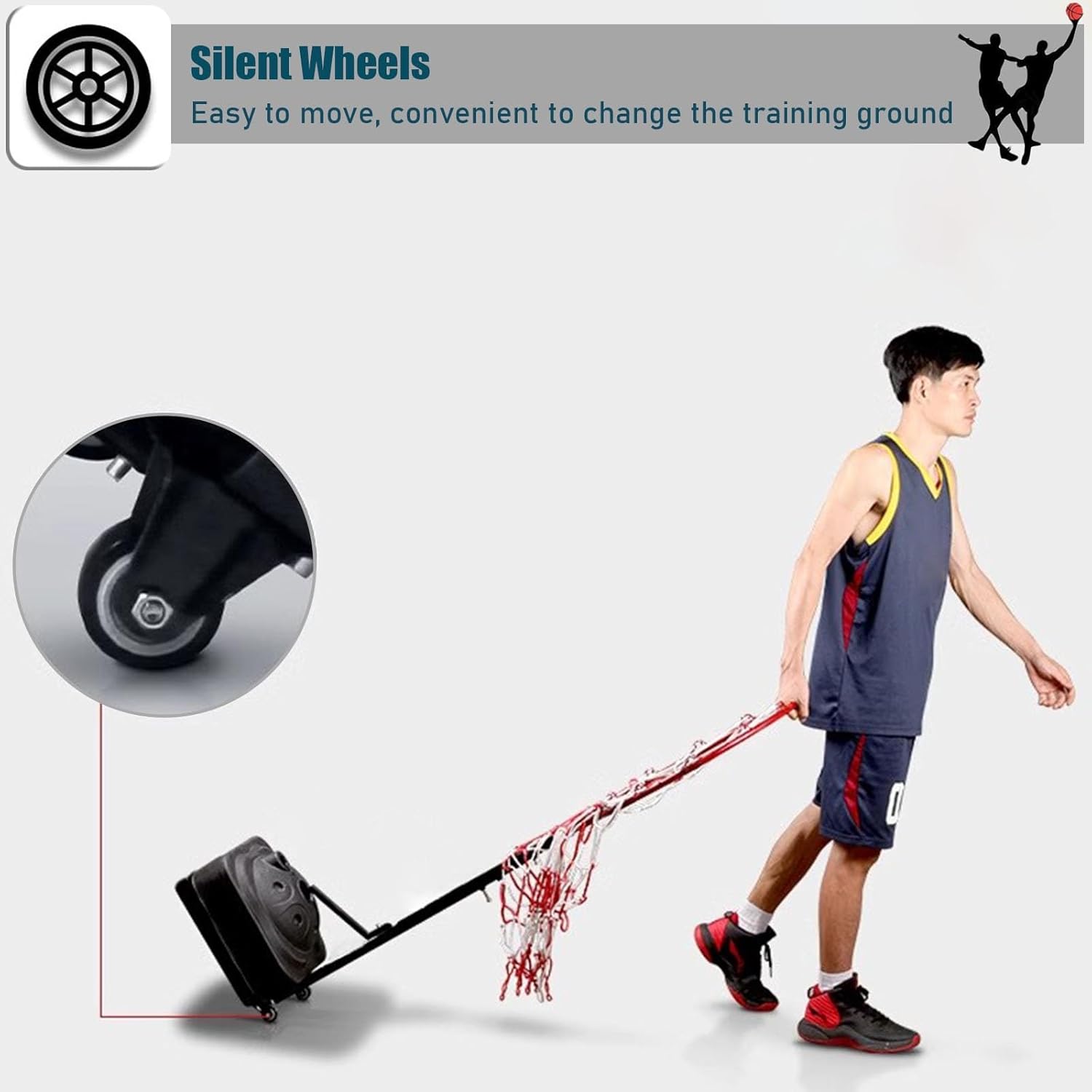 This removable, height-adjustable basketball passing device will help you practice your passing and develop great passing skills. Perfect for basketball enthusiasts.● Specification: → Material: Iron, PE Plastic Base→ Dimensions: As shown in the picture.- Base Size: 35cm x 35cm ( 13.7 inch x 13.7 inch ). - Hoop Width: 55cm ( 21.6 inch ). - Adjustable Height: 120 cm - 160 cm ( 47.2 inch - 63 inch ), 5 Gears Adjustable, 4.5 kg ( 9.9 lbs ) Weight. 140 cm - 180 cm ( 55 inch - 70.8 inch ), 5 Gears Adjustable, 4.7 kg ( 10.3 lbs ) Weight. 140 cm - 200 cm ( 55 inch - 78.7 inch ), 7 Gears Adjustable, 4.9 kg ( 10.8 lbs ) Weight. ● Features:→ Water Injection / Sand Injection Base. The base is filled with water or sand to add weight and prevent the trainer from falling over.→ Two Silent Wheels. Easy to move, convenient to change the training ground.→ Height Adjustable. Suitable for people of different heights. ● Package Contents: 1 x Basketball Passing Training Stand ( with Net Pocket )● Notice: → If you need more styles, please click our brand to find your favorite styles.→ If you have any questions before or after purchase, please feel free to contact us.→ Due to different batches and manual measurement, there may be slight error, thank you for your understanding.→ All the above pictures are displayed, and the different display effects may be different. Please refer to the actual product.