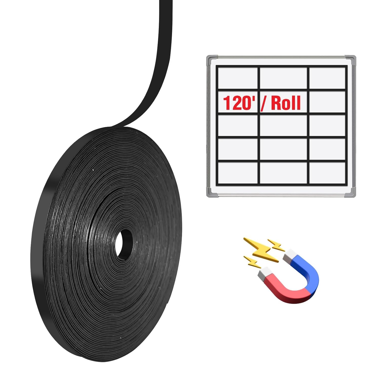 Colorful Magnetic Tape for Whiteboard in Classsroom&Office,Fine Line Gridding Highlighter Tape 1/5",Teacher Supplies.Black/White/Red/Yellow/Blue/Green,Each 40 yd Per Roll(Total 240 Yards/720 Feet ) Residue on your white board?Our whiteboard gridding tape leave no marks.Non-adhesive whiteboard tape and no residue when reposition Whiteboard magnetic tape easy move/reposition,highly recommend for teacher,excellend value for school and office organization. Making lines in minutes on magnetic whiteboards,steel lockers,refrigerators,and more.Peoples must haves to make timelines, calendars,grids.Creating planner board with sectioning, gridding.Organizing daily assignments neatly. Creating grid lined on magnetic white board,mark off part of whiteboard with fine line magnetic strips for students. Value bulk package 240 yds(720 feet - Each color 120 feet).Visible colors 0.2" thin magnetic tape for teacher